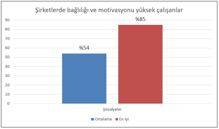 Tüm bu çalışmalarının amacının ne olduğunu da unutmamakta fayda var. 2014-2015 yıllarında yaklaşık 15.000 beyaz yakalı çalışanla görüştük. Bu çalışanların %54’ü şövalye çalışanlar yani her iki kişiden biri şirket için en önlerde savaşmaya hazır. En iyi şirketlerde (benchmark) ise bu oran %85.